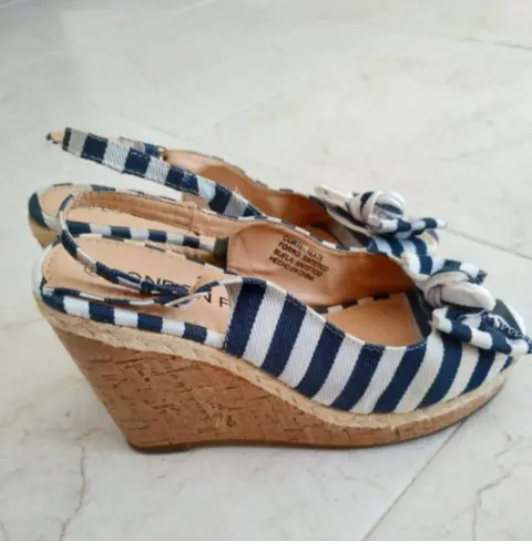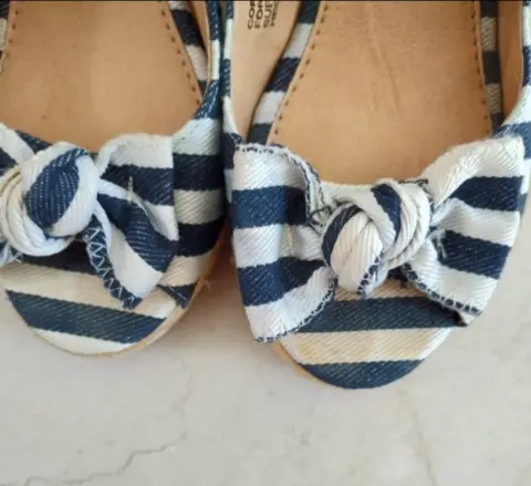 Hermosas alpargatas abiertas, del número 23.5 cms. Tienen un detalle de coloración al frente, al usarlas no se nota.