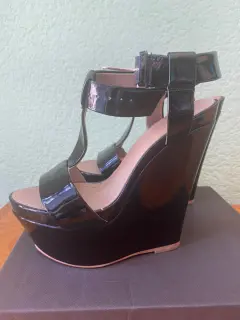 Super lindas cuñas/ sandalias negras de plataforma marca Diego Torre blanca de charol 🤩🤩🤩, totalmente de piel, usadas pero en excelente estado número 24.