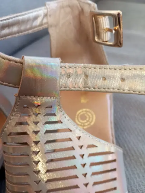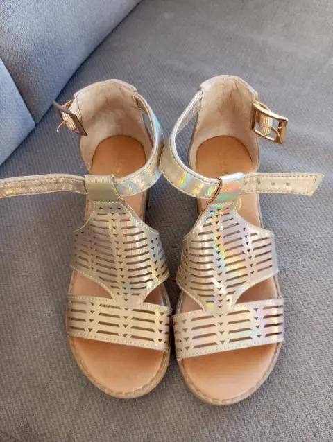 Huarache para niña. Huaraches para niña talla #19 color dorado tornasol