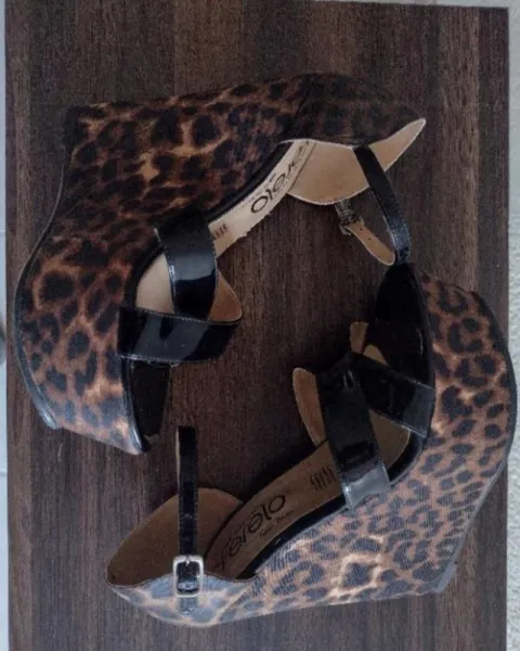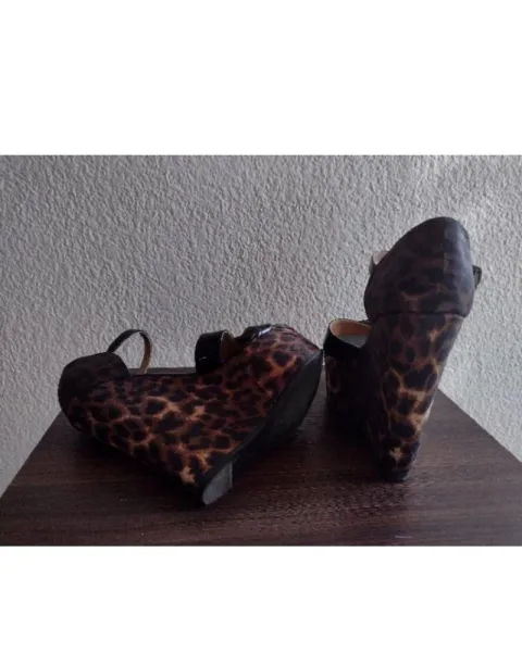 Plataformas animal print. Hermosas, cómodas y ligeras plataformas mitad animal print textil y mitad charol negro