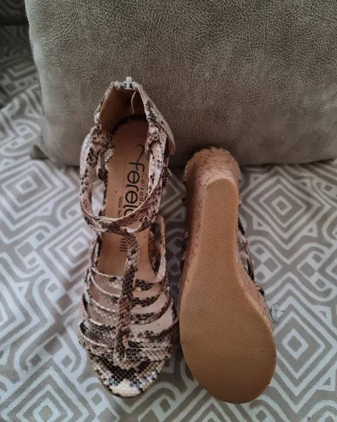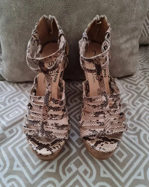 Sandalias de plataforma!!ANIMAL PRINT SNAKE!! CIERRE ATRAS DE TALON!! TALLA: 4.5CM / ALTO 12CM PLATAFORMA : 4cm!! TACON PUENTE FORRADO CON CORCHO/SUPER LIGERAS!!!SUELA ANTIDERRAPANTE!!