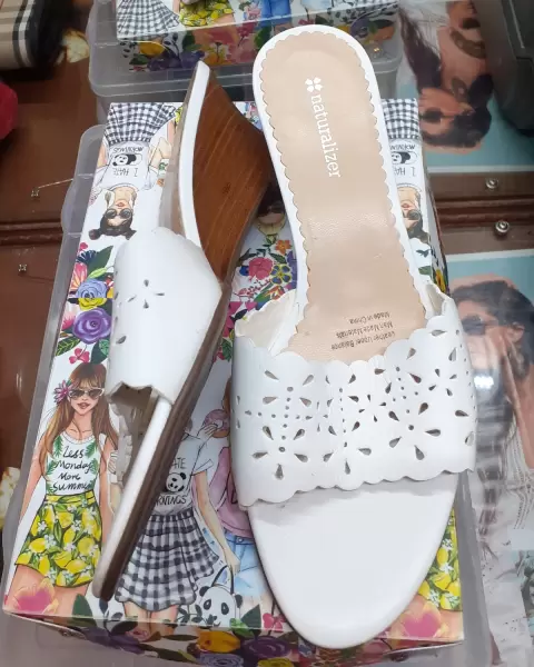 Sandalia blanca lazer. 7cm Alto figures con corte lazer da de si, sintetico Naturalizer USA importacion. A estrenar recomiendo para 3.5, y 4
