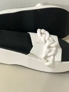 Sandalia color blanco con plataforma , detalles de cadena al frente muy cómodas , talla 5