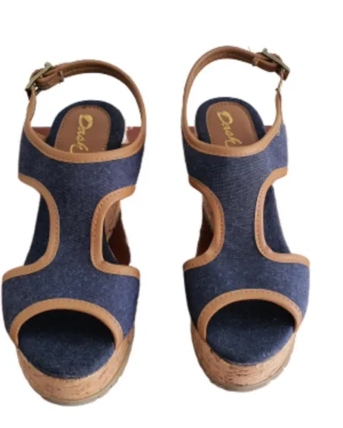 Hermosas y comodisimas sandalias de mezclilla!!!TALLA: 5 / TELA: MEZCLILLA/ TACON : 8.5 cm aprox / PLATAFORMA NIVELADA SUPER COMODA!! ESTAN COMO NUEVAS!!! MARCA: DASH