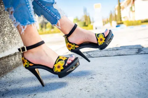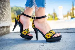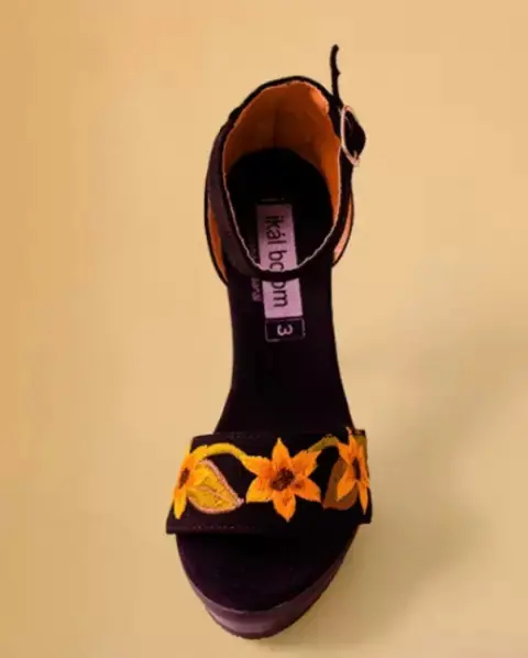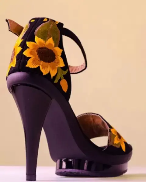 Sandalias con diseño artesanal girasoles bordados tacón del 14 cm y una plataforma de 2 cm , tengo talla 4 y 5