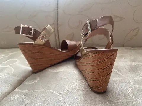 SANDALIAS NUEVAS TH CON PUENTE DE CORCHO HERMOSAS🥰🥰, NO TIENEN NINGÚN DEFECTO SON NO. 5 , SE MUESTRA CAJA CON EL COSTO DE TIENDA