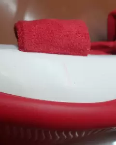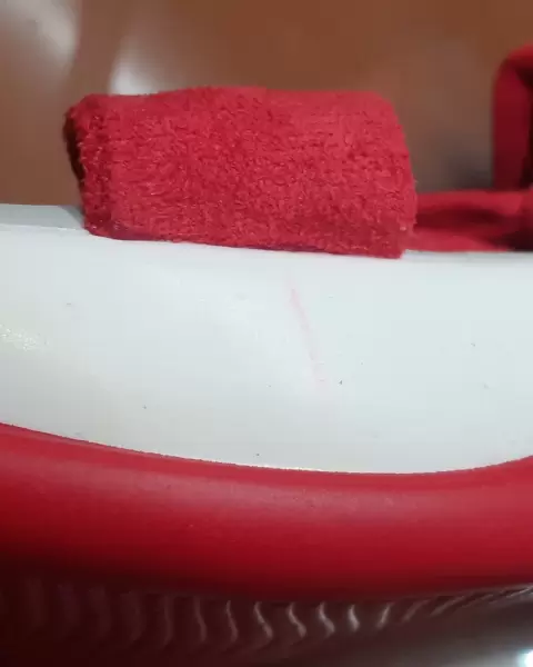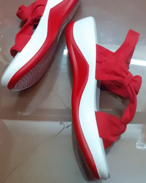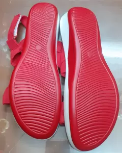 Sandalia Roja. 5 a 7cm en alto de plataforma, tipo ortopedico, a westerner. Tiene un ligero rayon rojo en parte interna del mismo material por como venian envueltos en bolsa. Recomiendo para 3.5 y 4, fiel a su talla. Correa en tobillo ajustable