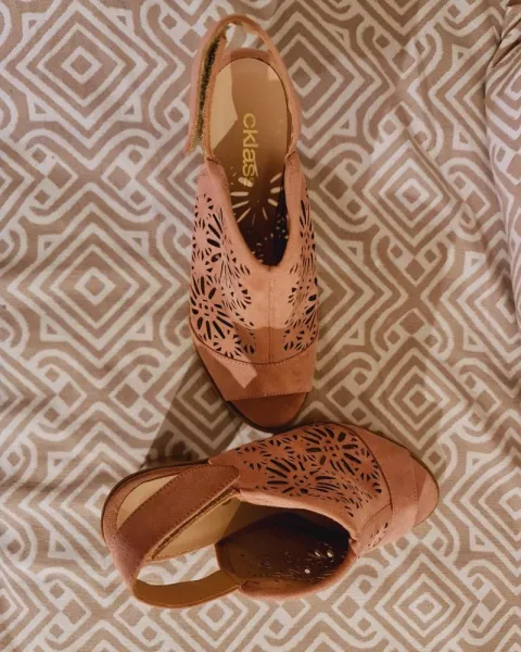SANDALIA ROSA ADORNO CALADO!!CKLASS. BELLA SANDALIA ROSA TONO DELICADO!! VELCRO PARA AJUSTAR MUY COMODO!!TACON: 8.5CM/ TELA/ MARCA: CKLASS/ SUELA ANTIDERRAPANTE/CASI NUEVAS!!Estrenalas!!