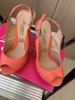 Sandalia tacon alto corrido. Sandalia color coral con diseño en tacón tipo corcho con flores corte sintético, talla 22.5 una sola puesta