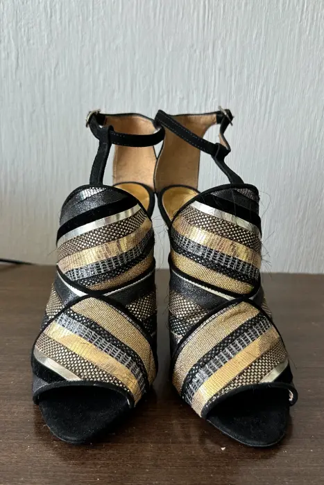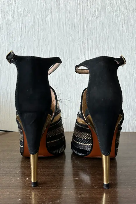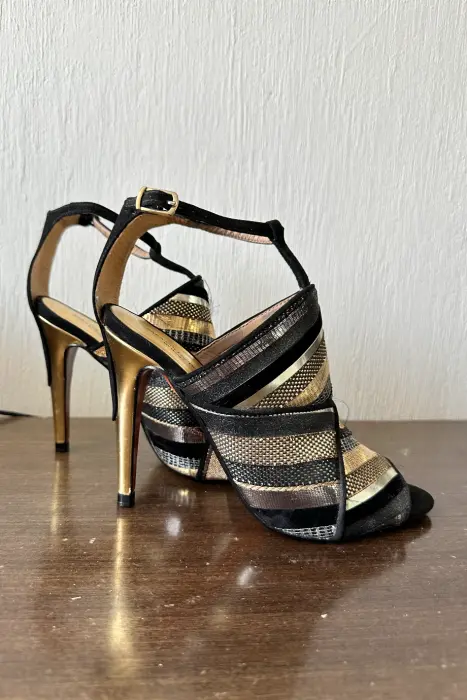 Preciosas sandalias de tacón de aguja, perfectas para tu outfit de este verano, discretas y elegantes, el tacón mide 11cm, el material es textil con velvet y la suela de cuero, tienen una sola puesta por un par de horas, están en muy buenas condiciones