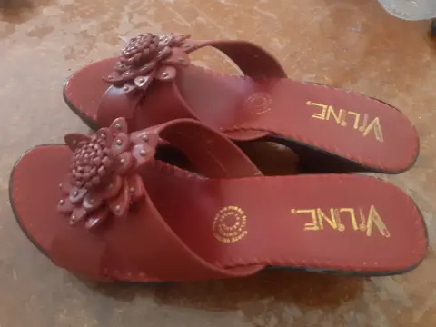 Sandalias color rojas y suela negraAbiertas, solo de meterTalla 23Corte vacunoTacón bajoSuela antiderrapanteDe usoMarca Viline