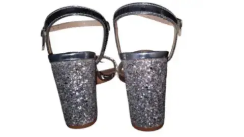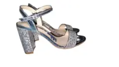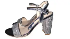 Sandalias con tacón color plata brillan muy bonito se usaron solo unas horas se ven hermosas talla 23