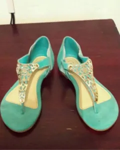 Sandalias súper cómodas en perfecto estado, talla 3 con adorno en color dorado en la parte de enfrente , la estetica esta en perfecto estado ideales para este calor !!! :)