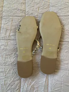 Hermosas sandalias color dorado se usaron una ves. Excelentes condiciones son para pie delgado vienen reducidas