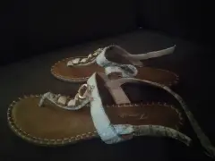 Sandalias de 3 piquetes y pedreríaColor crema y piedras color durazno son de 5 mexicanos, muy cómodas y casuales