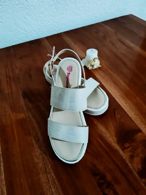 Sandalias. Sandalias de plataforma en color beige con toques dorados en las correas