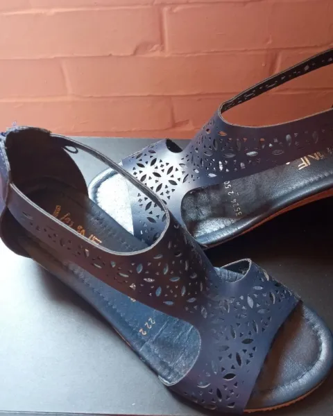 Sandalia para dama Talla 5 color azul marino con diseño de flores y suela antideslizante Muy comodo