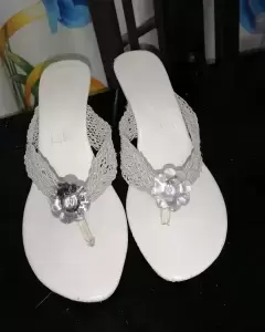 Sandalias blancas. Color: BlancoTalla: 4Tacón de 6 cmDetalle: *Estan maltratados del filito de la parte del talón*Las tapas ya estan desgastadas*Se descarapelo en la planta un cachito donde entra el dedo 3ra fotoCupón: JanMoPBn0H