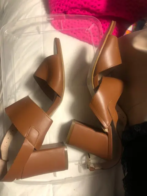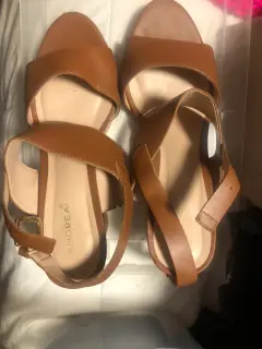 Sandalias cafés de tacón pequeño muy cómodas. Solo una puesta de correas