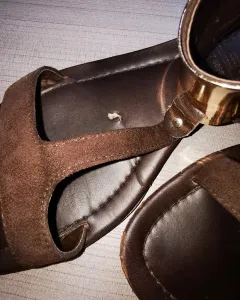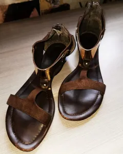 SANDALIAS CAFÉS CON DETALLE DORADO