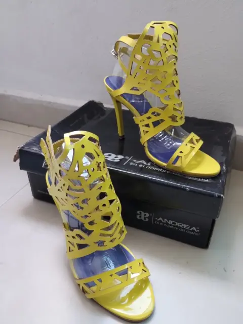 Hermosas sandalia charol amarillas marca andrea solo una puesta excelentes condiciones se entrega en caja original