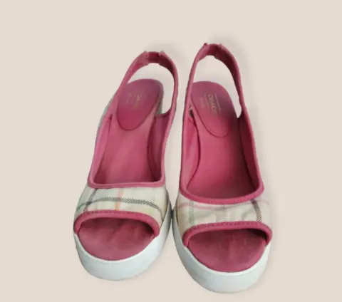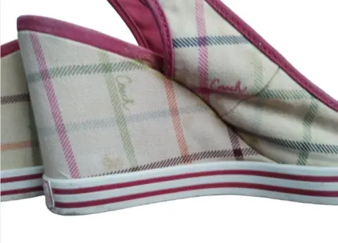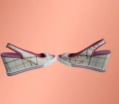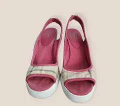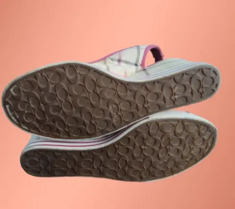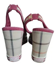Hermosas y cómodas sandalias coach de tela en buen estado casi no se usaron, detalle: se despegaron las mande a pegar y las embarraron un poco en las fotos se ve, si quedaron bien pegadas, en la suela se ve que casi no las use