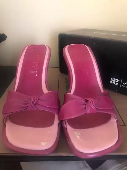 Linda’s sandalias con plataforma color magenta , se usaron muy poco como se ve en la suela . Los detalles de ven en las fotos , desde todos los ángulos . Miden 9.5 de alto .