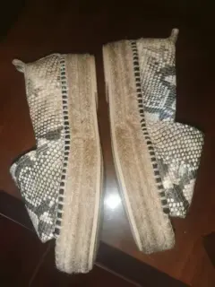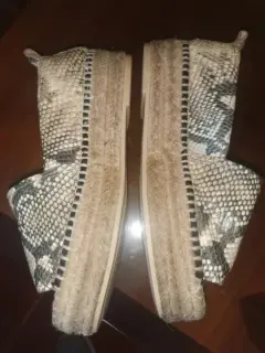Preciosas sandalias con plataforma de yute. De PIEL animal print del número 3.5 HAN sido usadas en muy buen estado limpias no despegadas ni rotas