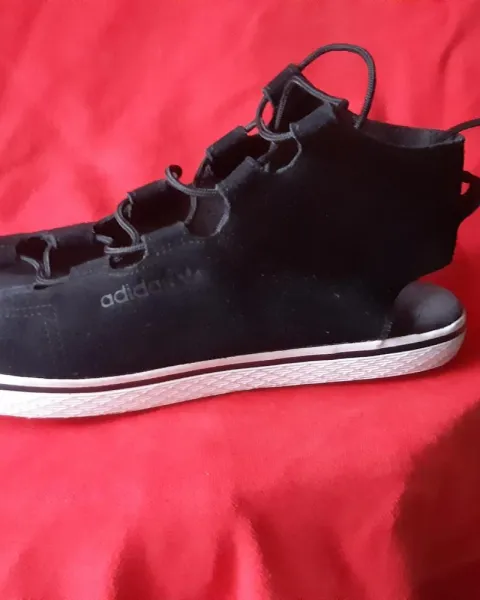 Sandalias de modelo único! Nunca verás otras iguales , negras de gamuza , marca Adidas , originales. Talla 5 .