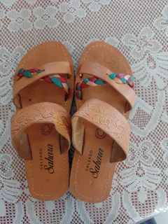 Sandalias de piel. #2 y #4. Las café con beige #2. Las de trenzas de colores #4 únicas tallas, únicas piezas.