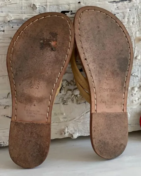 Sandalias de piel Bernardo. Talla: 6 americano, 3 mexicano y muy fiel a su talla. Miden 23.5 cm y 9.5 cm de ancho.Tiene pequeñas manchas que se ven en fotos. Muy poco uso