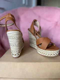 Sandalias de plataforma. Sandalias de plataforma con perlas studio F