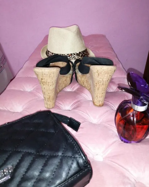 Sandalias de plataforma. Sandalias de plataforma con decoración de remaches, estan diseñadas en elástico, lo que las hace muy cómodas ya que se amoldan. Dice 6.5, pero vienen reducidas le van bien a un 5.5 ó 6.