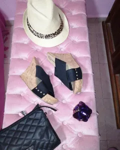 Sandalias de plataforma con decoración de remaches, estan diseñadas en elástico, lo que las hace muy cómodas ya que se amoldan. Dice 6.5, pero vienen reducidas le van bien a un 5.5 ó 6.