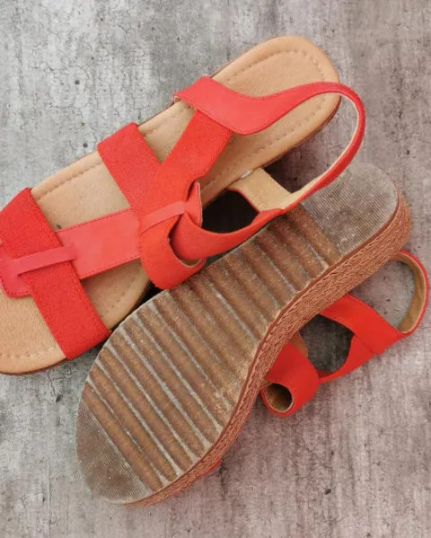 Sandalias de plataforma rojas 25. Talla 25 mexicano, correas en sintético y elástico (estira bien).Son Súper cómodos 🙌🙌Usados pero en excelentes condiciones!Se ven muy lindos con vestidos ligerosSi tienes dudas con gusto te ayudo!🤗