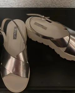 Sandalias de Plataforma Studio F. Hermosas sandalias de plataforma únicas en estilo, plataforma de 5 cm., ideales para looks casuales, acabado en color plata, totalmente nuevas sin ninguna puesta.