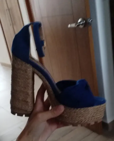 Sandalias de pulcera. Lindas sandalias plataforma de pulcera, tacón grueso, en color azul, las puedes llevar con tus jeans o ls prenda que prefieras ya que su moderno diseño va muy bien con todo.