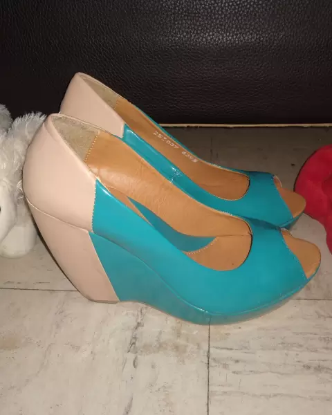 Sandalias de tacón. Solo se usaron en una ocasión.Medida: 5½Bicolor: beige-verde aqua