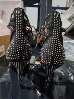 Zapatillas de tacón abiertas, color negro con estopel plateado, totalmente nuevas, Talla 2.5 mx.