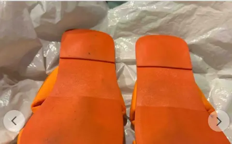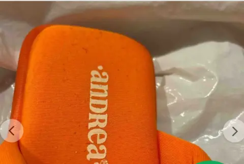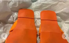 Sandalias de tela acolchonadas cruzadas sin tacón puestas una vez de color naranja