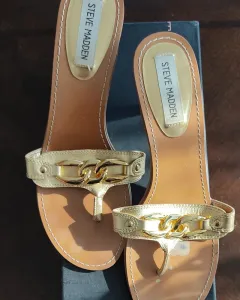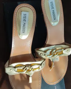 Sandalias doradas. Sandalias Steve Madden, del número 6 mexicano, tacon del 7, tienen como 3 puestas