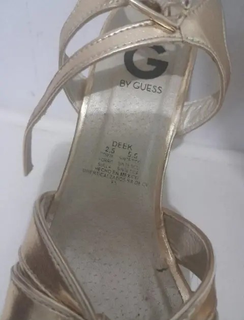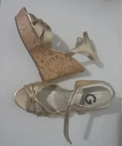 Sandalias G by Guess. Sandalias de plataforma doradas, súper bonitas, muy combinables...poco uso, talla 2.5 pero vienen reducidas, creo quedarían mejor a talla 2. Pequeño detalle en punta, casi imperceptible