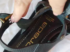 Sandalias gladiador Prada. Bonitas sandalias tipo gladiador color negro con estoperoles dorados, tienen plataforma para mayor comodidad. Talla 25 cm. En buenas condiciones aún se utilizaron poco.