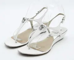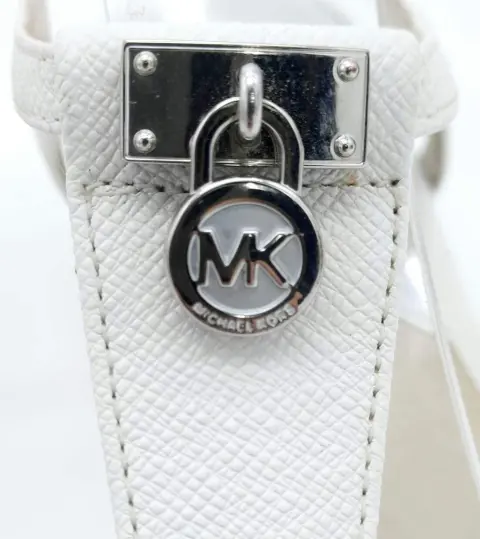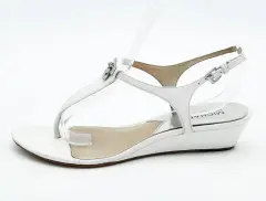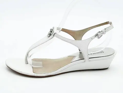 Sandalias de piel Michael Kors, talla 24.5mx (7.5 Usa), logotipo de metal al frente en tono plata, rasponcitos normales de uso al frente, la suela presenta signos de uso ( ver fotografías).