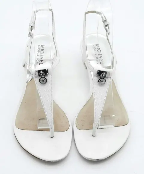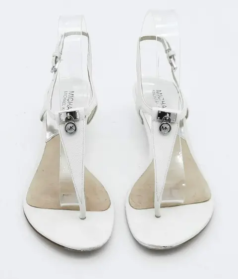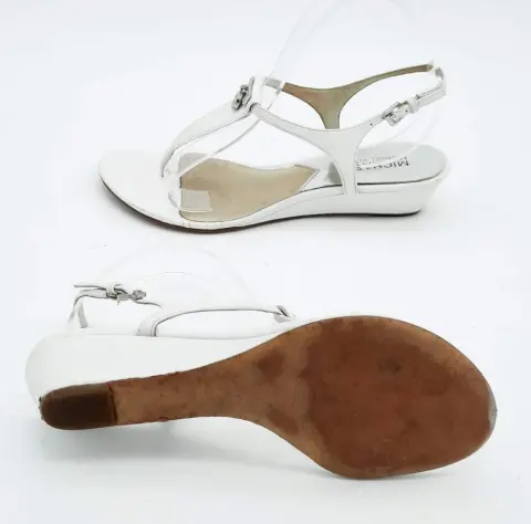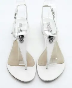 Sandalias Michael Kors talla 4.5 Mx. Sandalias de piel Michael Kors, talla 24.5mx (7.5 Usa), logotipo de metal al frente en tono plata, rasponcitos normales de uso al frente, la suela presenta signos de uso ( ver fotografías).