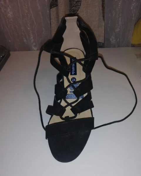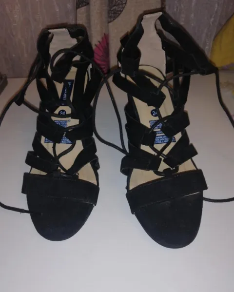 Sandalias negras con agujetas, lo que hace que las puedas ajustar a tu gusto.Tacon de 8 cm.