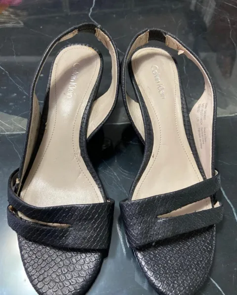 Sandalias negras Calvin Klein. Zapatillas tacón de 5 cms, de tiras, tiene detalles por dentro no se notan en el uso