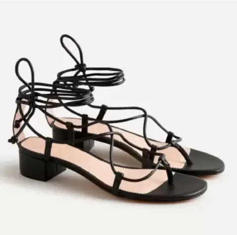 Sandalias negras J.Crew. Sandalias J Crew con cintas para amarrarse al tobillo, vienen un poco amplias, son 3 pero en realidad son como 3.5-4, el precio de la etiqueta dice 148.00, pero está en dólares así que con el tax y el tipo de cambio su precio original es de 3,223.00, el tacón mide 3. 5 cm.