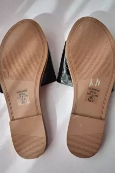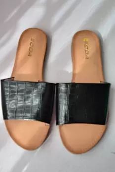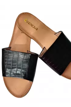 Sandalias negras SODA. Comodas Sandalias planas, Negras de Charol, # 5.5 Marca Soda