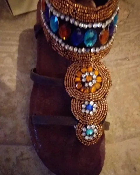 Sandalias,pedreria,pata dd gallo ,son 24 peeo vienen reducidaz ñlf eso son 23,56